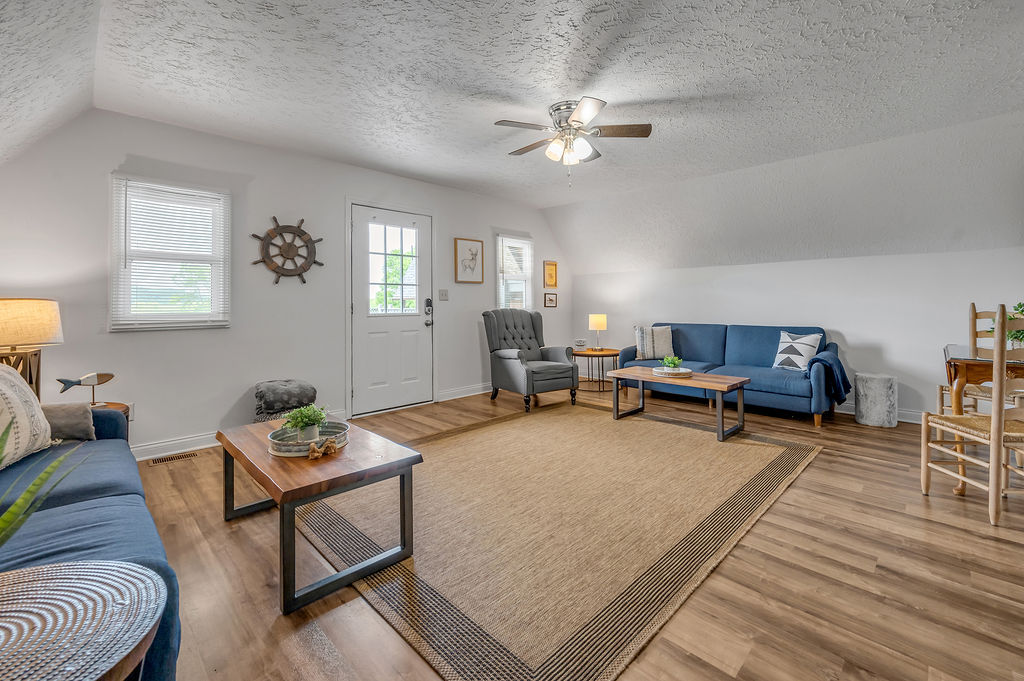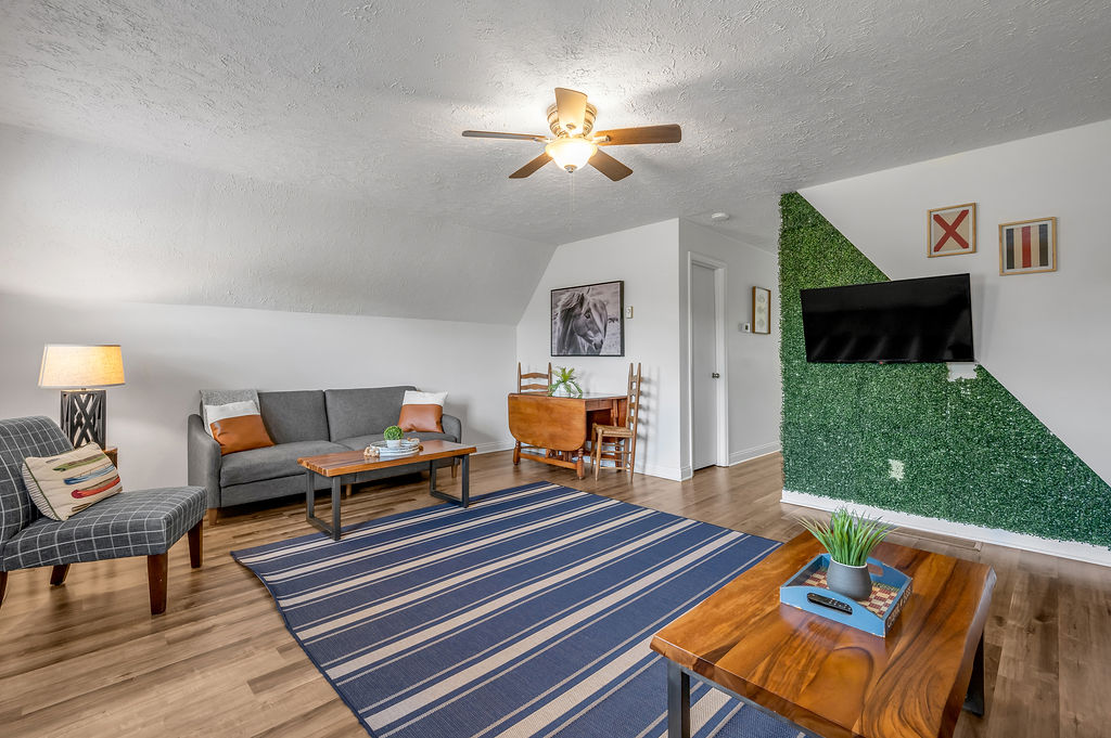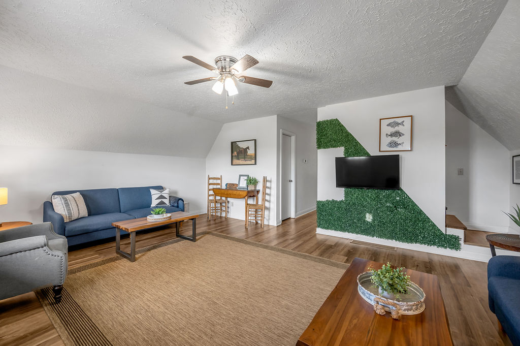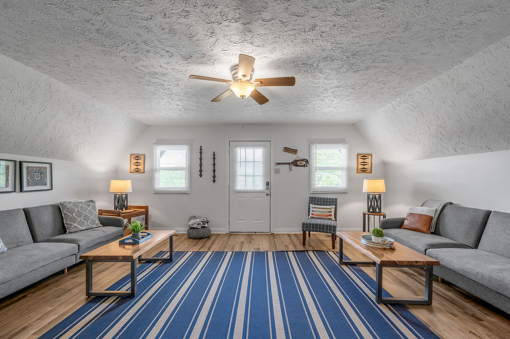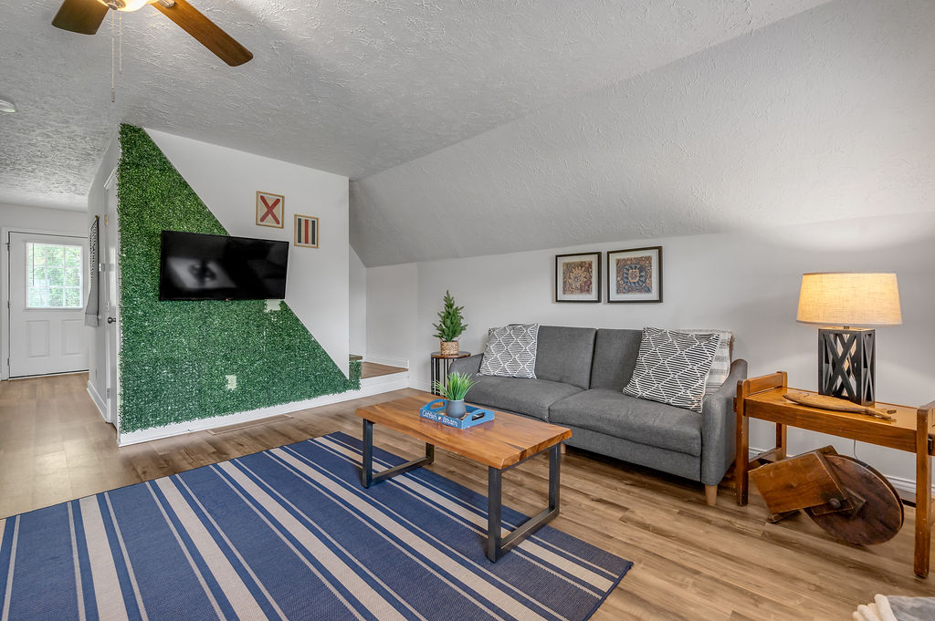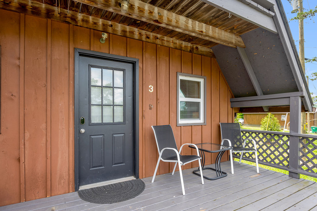 This boho styled one-level apartment suite features a large vaulted family room with two sleeper futons, full kitchen with spacious dining area, two bedrooms with queen bed and two full bathrooms. A small, covered rear deck and large, covered front deck offers private outdoor relaxing space. Private driveway located right next to the cabin will […]