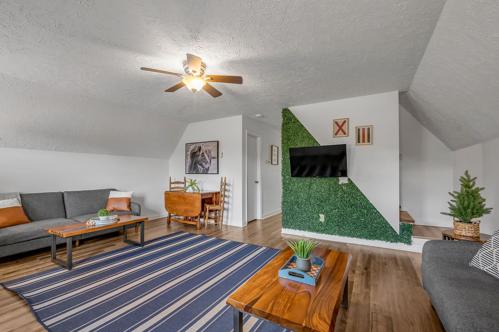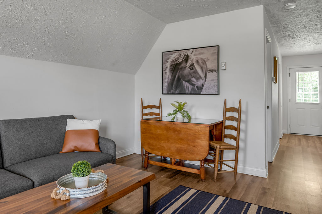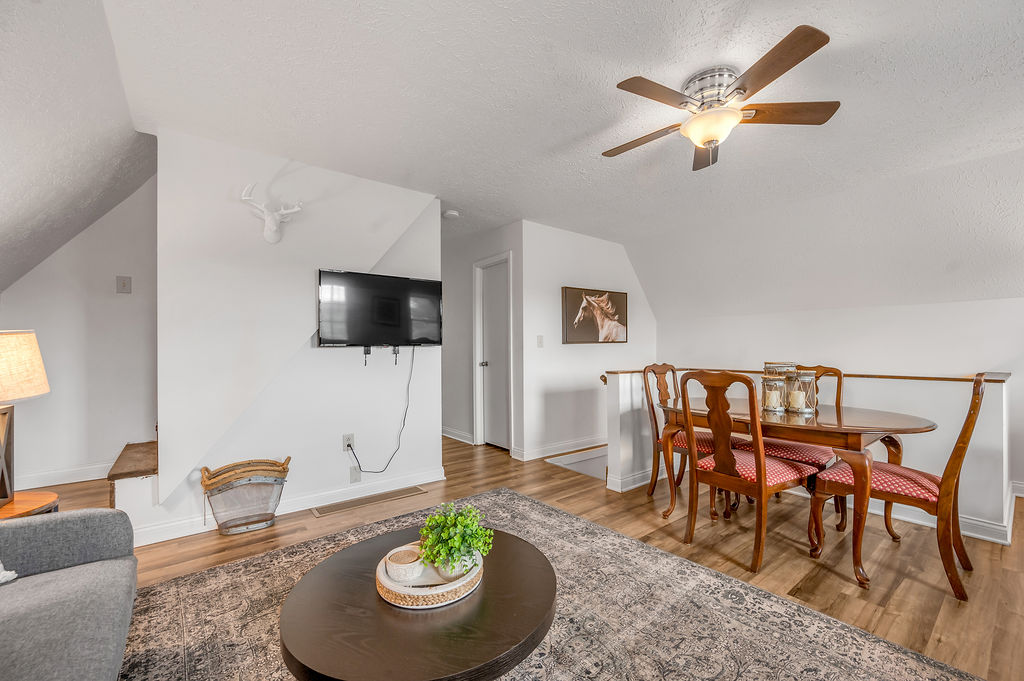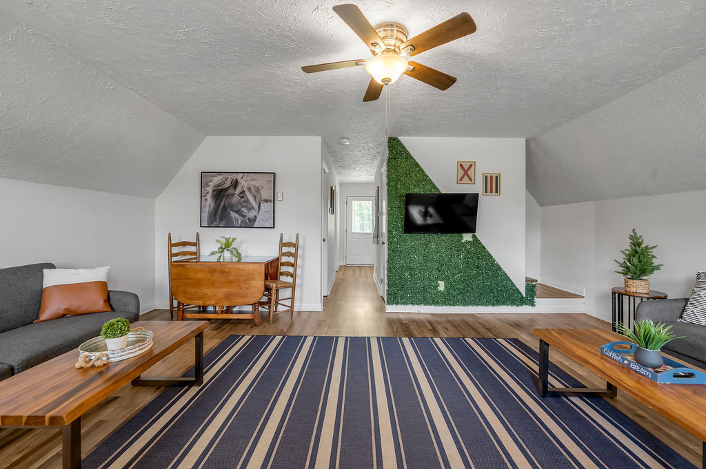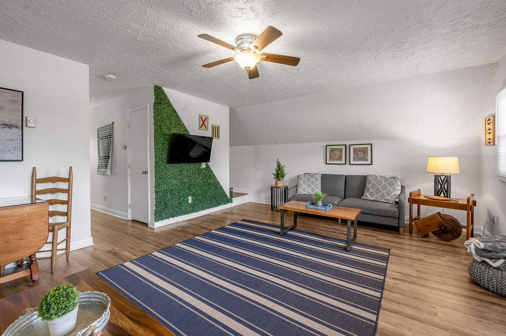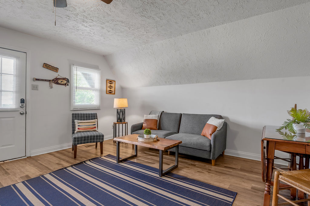 This boho styled one-level apartment suite features a large vaulted family room with two sleeper futons, full kitchen with spacious dining area, two bedrooms with queen bed and two full bathrooms. A small, covered rear deck and large, covered front deck offers private outdoor relaxing space. Private driveway located right next to the cabin will […]