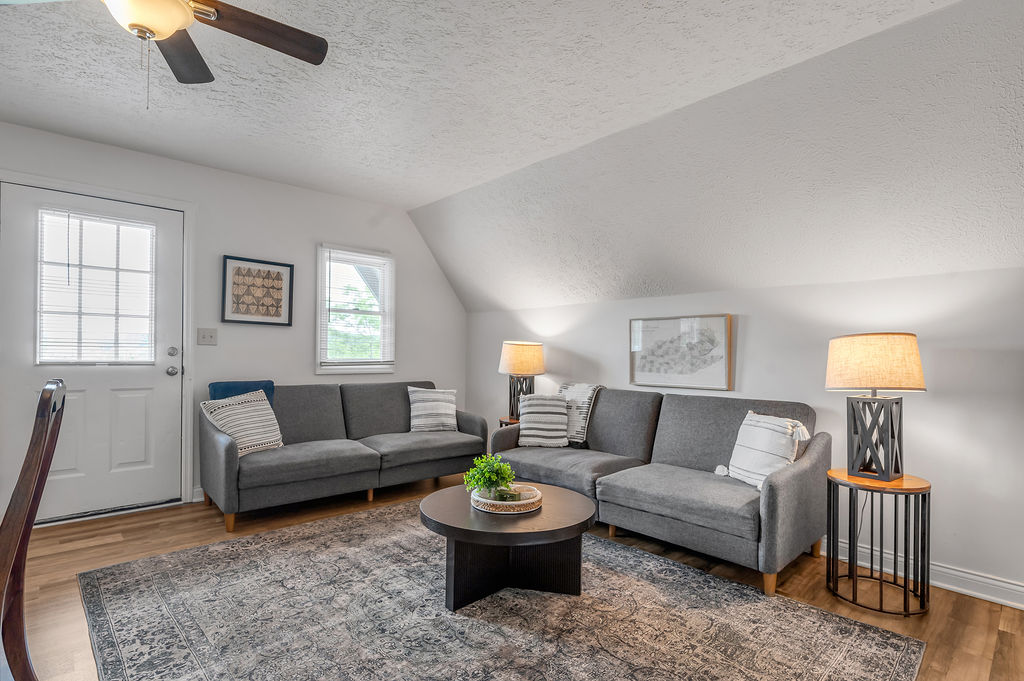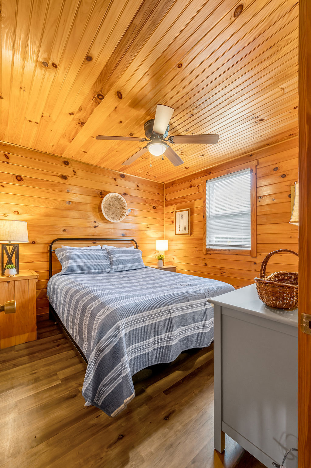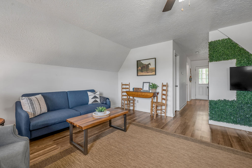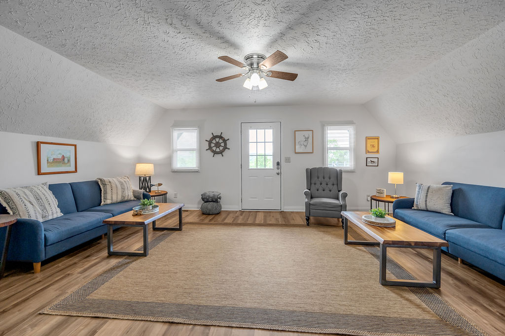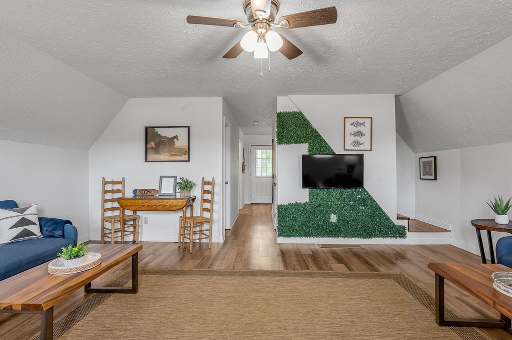 This boho styled one-level apartment suite features a large vaulted family room with two sleeper futons, full kitchen with spacious dining area, two bedrooms with queen bed and two full bathrooms. A small, covered rear deck and large, covered front deck offers private outdoor relaxing space. Private driveway located right next to the cabin will […]