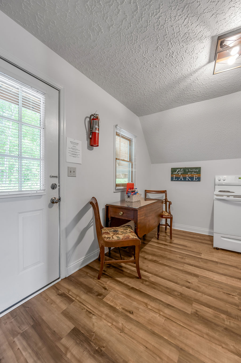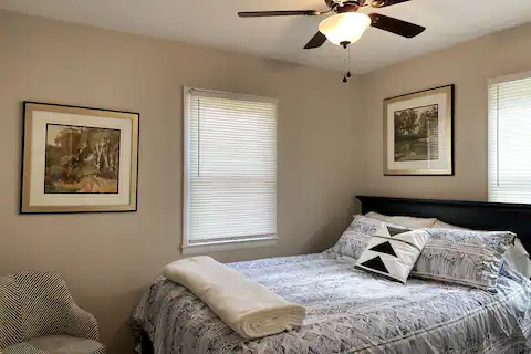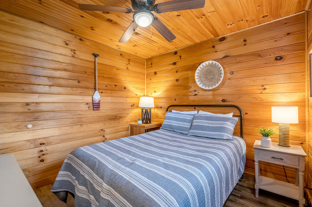 This boho styled one-level cabin features a family room with sleeper futon, full kitchen, bedroom with a queen bed and full bathroom. A small, covered front deck offers private outdoor relaxing space. Private driveway located right next to the cabin will accommodate your vehicle and boat. Comfortably sleeps 2-4 (the futon is best for one […]