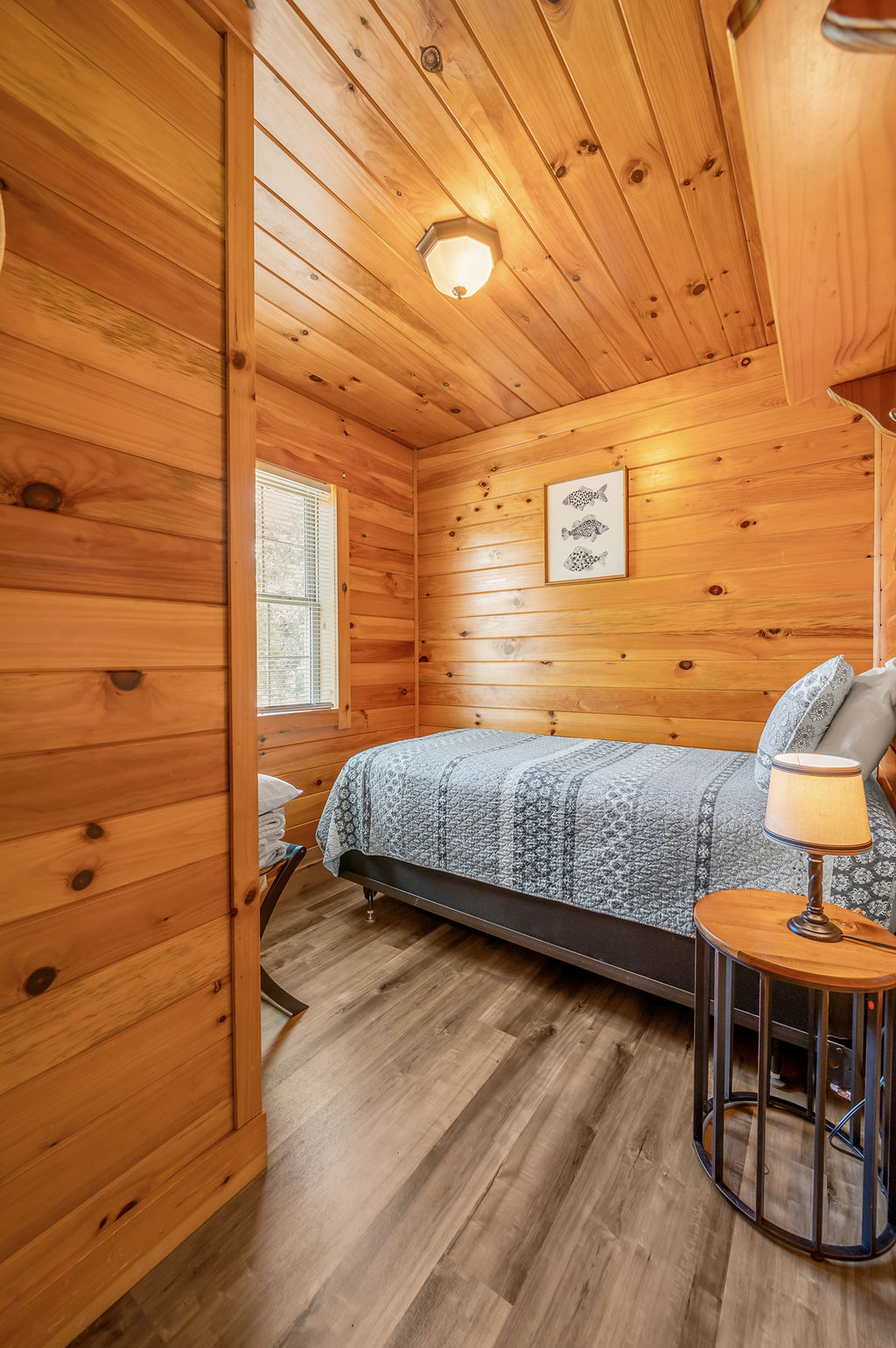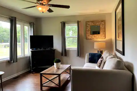 This boho styled one-level cabin features a family room with sleeper futon, full kitchen, bedroom with queen bed and full bathroom. A small, covered front deck offers private outdoor relaxing space. Private driveway located right next to the cabin will accommodate your vehicle and boat. Comfortably sleeps 2-4 (the futon is best for one adult […]
