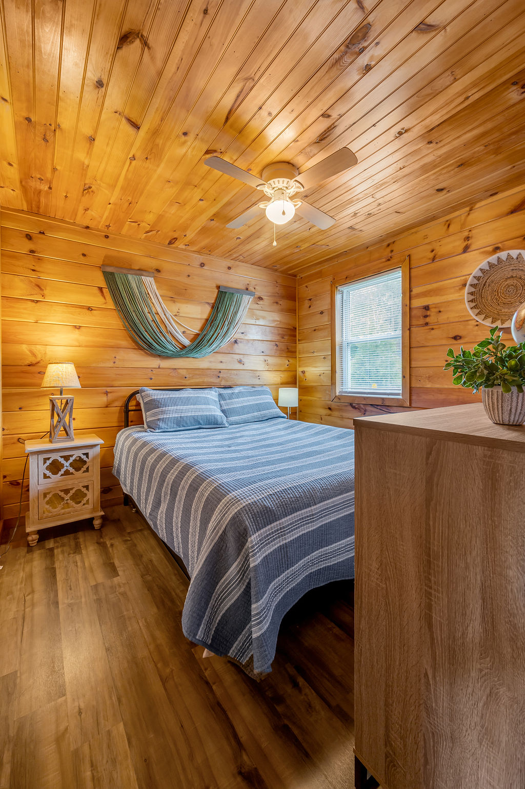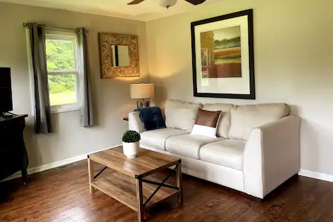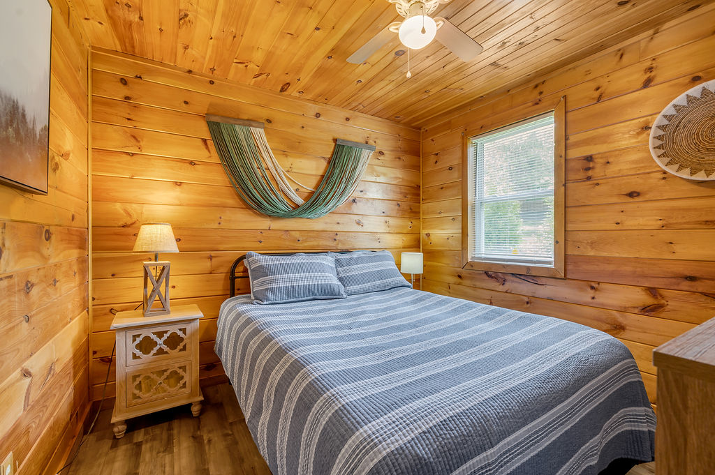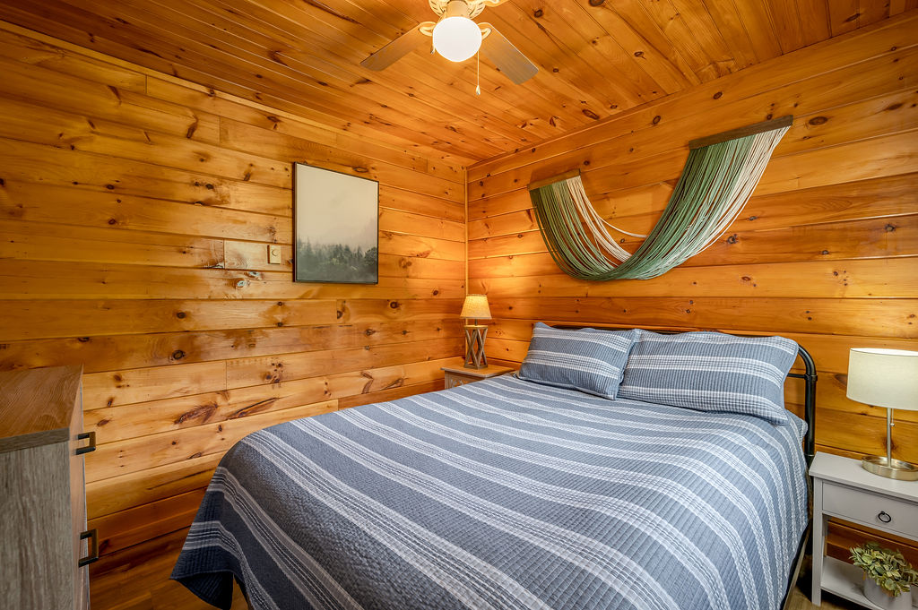 This boho styled one-level cabin features a family room with sleeper futon, full kitchen, two bedrooms — one with a full bed and one with a twin bed — and full bathroom. A small, covered front deck offers private outdoor relaxing space. Private driveway located right next to the cabin will accommodate your vehicle and […]