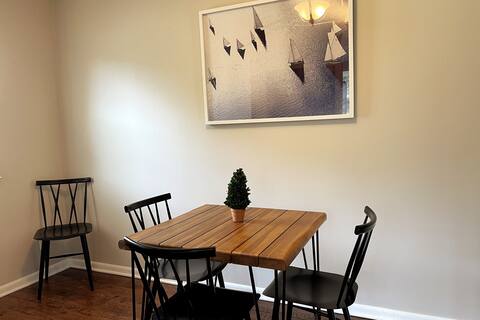 - Amenities: Air Conditioning, Backyard, Carbon Monoxide Alarm, Coffee Maker, Cooking Basics, Dishes and Silverware, Essentials, Free Parking on Premises, Heating, Hot Water, Kitchen, Outdoor Playground, Patio or Balcony, Private Entrance, Refrigerator, Shampoo, Smoke Alarm, TV, Wifi