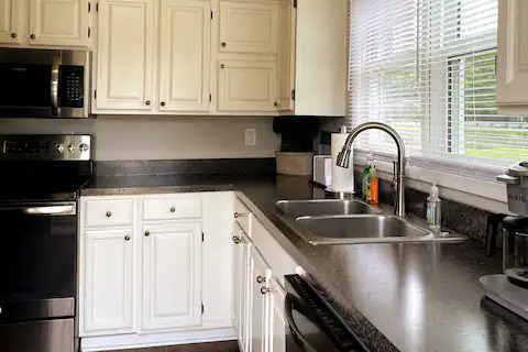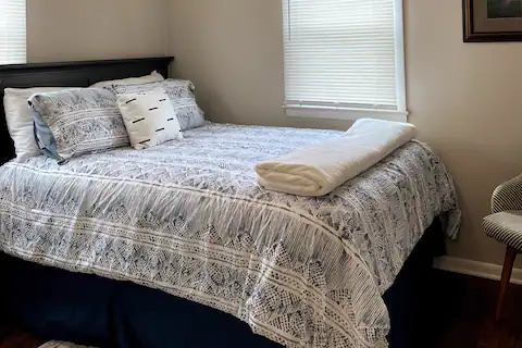 - Amenities: Air Conditioning, Backyard, Bathtub, BBQ Grill, Bed Linens, Body Soap, Carbon Monoxide Alarm, Cleaning Products, Clothing Storage, Coffee Maker, Conditioner, Cooking Basics, Dedicated Workspace, Dining Table, Dishes and Silverware, Dryer, Essentials, Fire Pit, Free Parking on Premises, Heating, Hot Water, Kitchen, Outdoor Dining Area, Outdoor Furniture, Outdoor Playground, Patio or Balcony, Refrigerator, Shampoo, Smoke Alarm, TV, Washer, Wifi